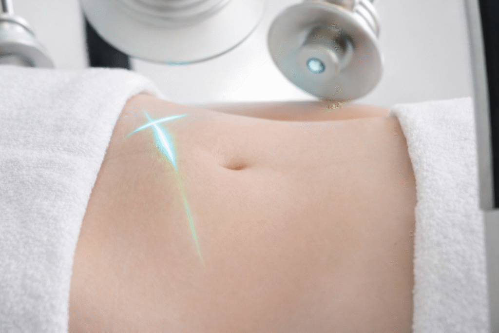 Fractional ablative laser renews skin, reducing laxity, scars, and stretch marks through deep collagen remodeling. Customizable for areas like abdomen, arms, or thighs; minimal to moderate downtime, with firmer texture emerging over 3-6 months.